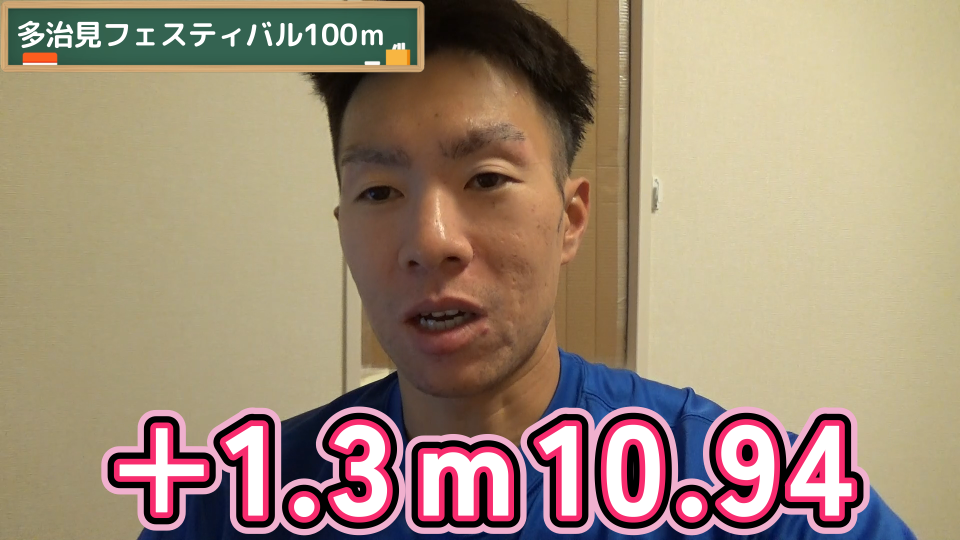 雨の中で+1.3m10.94でした。